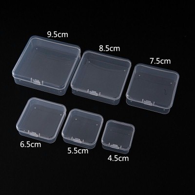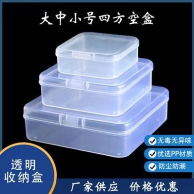 Brief:方形小方盒透明pp塑料穿戴甲串珠渔具盒包装零件一次性桌面收纳盒7.5*7.5*2.6厘米方盒