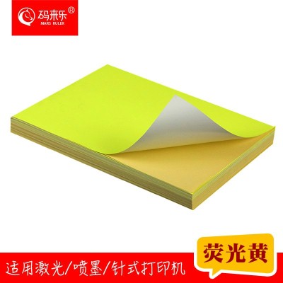 Name:A4彩色不干胶打印纸空白书写背胶黄绿/浅蓝/粉色激光喷墨贴纸