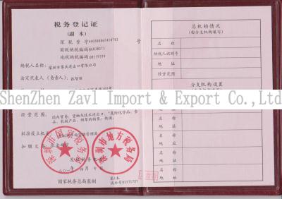 Tax registration certificate(点击放大) |