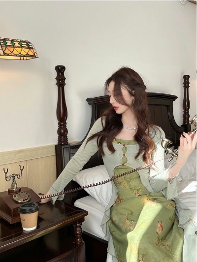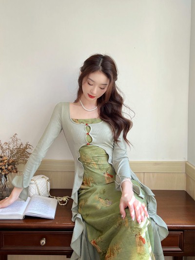 Name:新中式国风绿色荷叶边仙女长裙