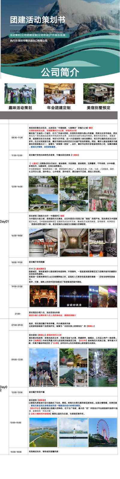 肇庆七星岩鼎湖山2日1夜品质团建活动 Zoom Name:ShenZhen Zavl Import & Export Co., Ltd Name:肇庆七星岩鼎湖山2日1夜品质团建活动 Model:Zavl-ZQQXYDHSTOEPZTJD Price: Brief:肇庆七星岩鼎湖山2日1夜品质团建活动 Details